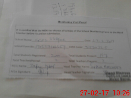 | Certified that this School was Inspected by the Undersigned MEA/DMO Today and the Information Stated Above is as Per Record. | |||||