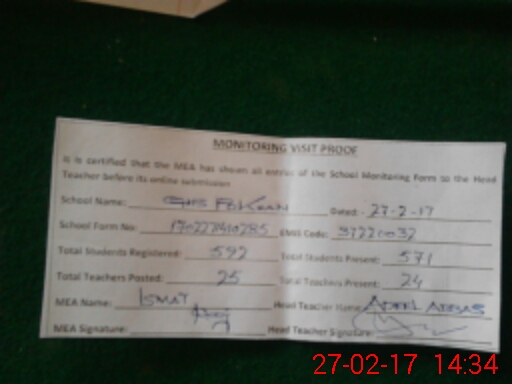 | Certified that this School was Inspected by the Undersigned MEA/DMO Today and the Information Stated Above is as Per Record. | |||||