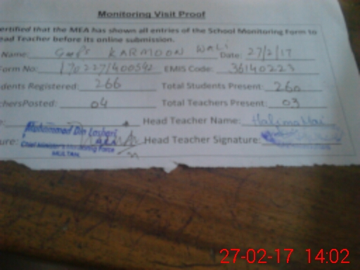 | EMIS Code: 36140223 | Name of School: GMPS KARMON WALI JALALPUR PIRWALA | |||