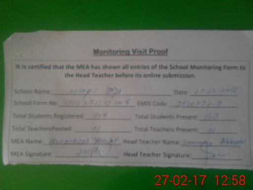 | Attendance Register | Head Teacher | MEA with School | Visit Proof |