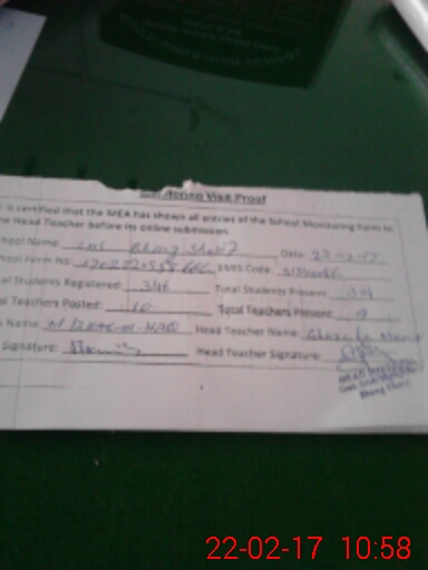 | Attendance Register | Head Teacher | MEA with School | Visit Proof |