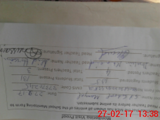 | Attendance Register | Head Teacher | MEA with School | Visit Proof |