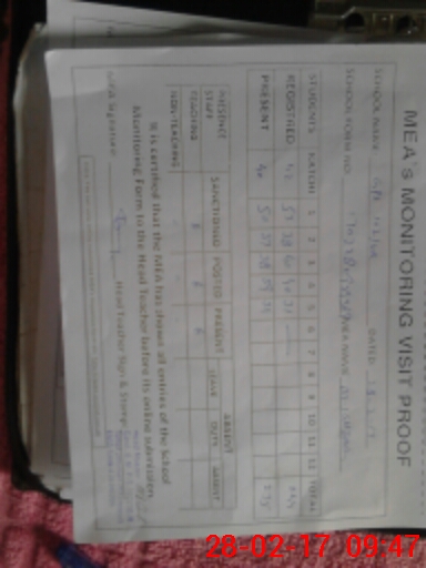 | Attendance Register | Head Teacher | MEA with School | Visit Proof |