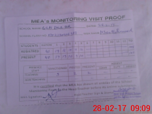 | Attendance Register | Head Teacher | MEA with School | Visit Proof |