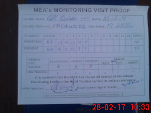 | Certified that this School was Inspected by the Undersigned MEA/DMO Today and the Information Stated Above is as Per Record. | |||||