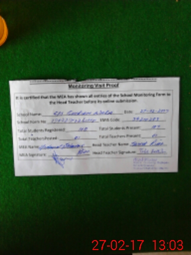 | Attendance Register | Head Teacher | MEA with School | Visit Proof |