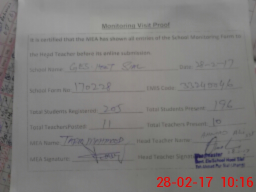 | EMIS Code: 33240046 | Name of School: GES HOOT SIAL | |||