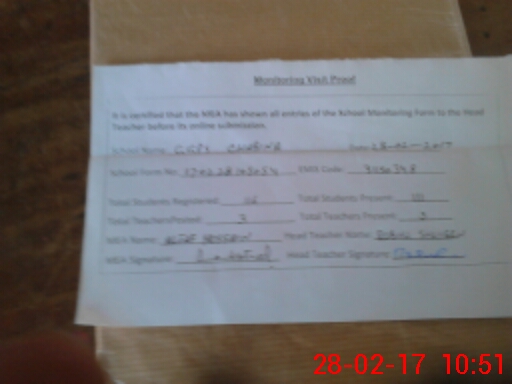 | Attendance Register | Head Teacher | MEA with School | Visit Proof |