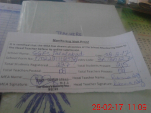 | Certified that this School was Inspected by the Undersigned MEA/DMO Today and the Information Stated Above is as Per Record. | |||||
