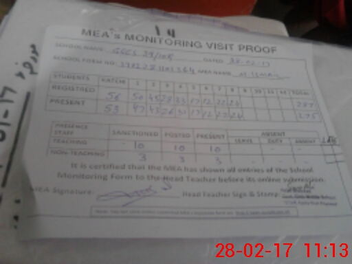 | Attendance Register | Head Teacher | MEA with School | Visit Proof |
