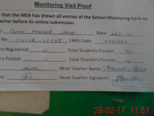 | EMIS Code: 31330890 | Name of School: GPS MANZOOR ABAD | |||