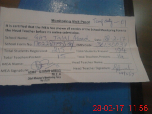 | EMIS Code: 36130037 | Name of School: GHS JALAL ABAD SHUMALI MULTAN | |||