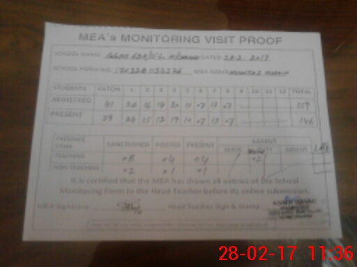 | Attendance Register | Head Teacher | MEA with School | Visit Proof |