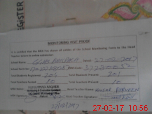 | Certified that this School was Inspected by the Undersigned MEA/DMO Today and the Information Stated Above is as Per Record. | |||||