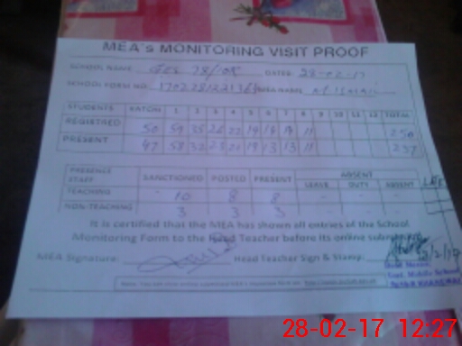 | Attendance Register | Head Teacher | MEA with School | Visit Proof |