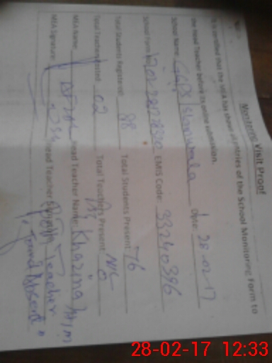 | Remarks (Use Separate Page if Required): Both teacher found absent from school NSBvRecord not available FTF also not available | |||||