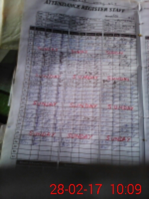 | CNIC | Full Name | Designation | R/C | Absence During Last Calender Month |