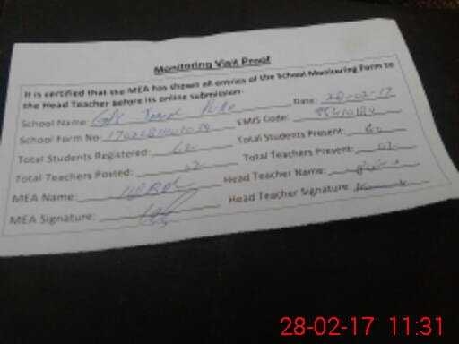 | Attendance Register | Head Teacher | MEA with School | Visit Proof |
