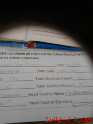 | Attendance Register | Head Teacher | MEA with School | Visit Proof |