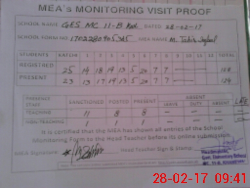 | EMIS Code: 36420637 | Name of School: GES MC 11-B KHANEWAL | |||