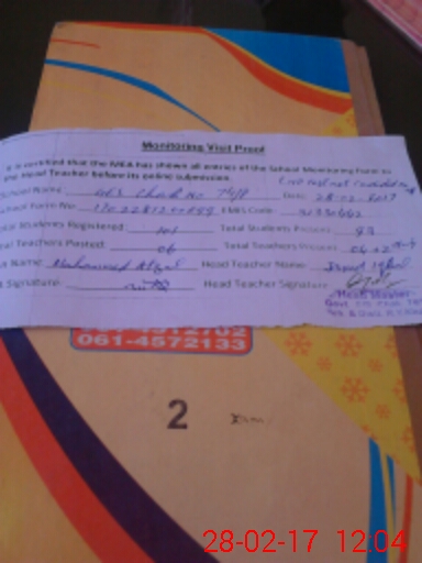 | Attendance Register | Head Teacher | MEA with School | Visit Proof |