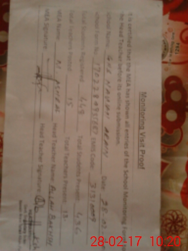 | Certified that this School was Inspected by the Undersigned MEA/DMO Today and the Information Stated Above is as Per Record. | |||||