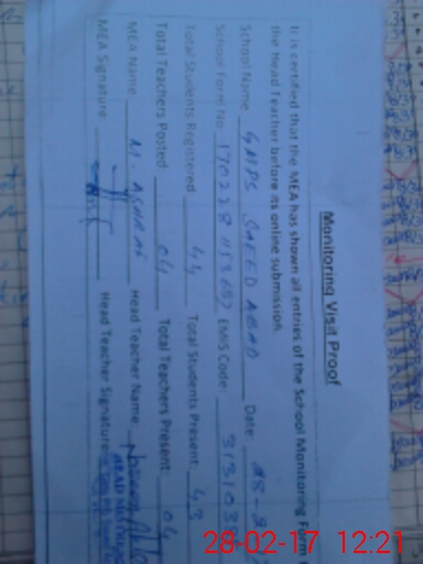 | EMIS Code: 31310385 | Name of School: GMPS SAEED ABAD KHANPUR | |||