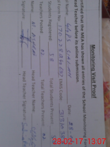 | Certified that this School was Inspected by the Undersigned MEA/DMO Today and the Information Stated Above is as Per Record. | |||||