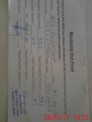 | EMIS Code: 31310049 | Name of School: GHS DESHTIAN | |||