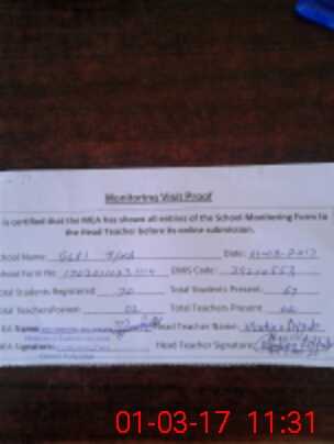 | Attendance Register | Head Teacher | MEA with School | Visit Proof |