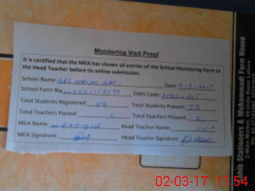 | Certified that this School was Inspected by the Undersigned MEA/DMO Today and the Information Stated Above is as Per Record. | |||||