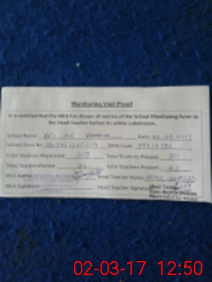 | Attendance Register | Head Teacher | MEA with School | Visit Proof |