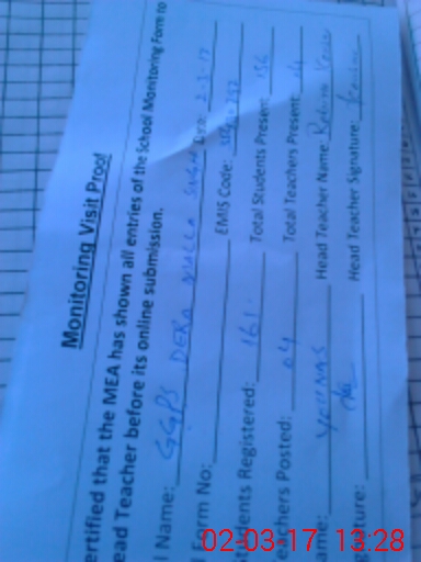 | Attendance Register | Head Teacher | MEA with School | Visit Proof |