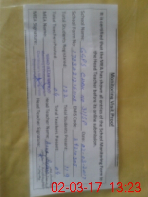 | Name: MU**** MU**** Designation: (School Headmaster's/Headmistress's) PST Phone/Cell Number: 03**** |
