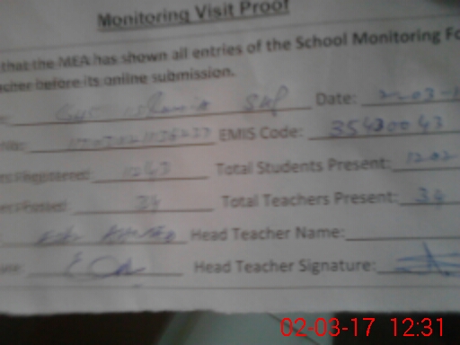| Attendance Register | Head Teacher | MEA with School | Visit Proof |