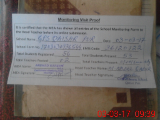 | EMIS Code: 36120122 | Name of School: GPS QAISAR PUR P/O MATOTLI SHUJABAD | |||