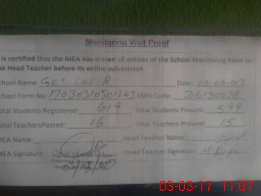 | Attendance Register | Head Teacher | MEA with School | Visit Proof |