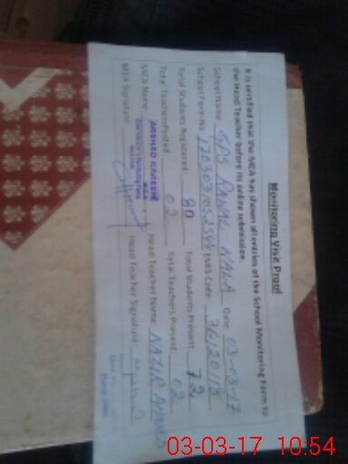 | Attendance Register | Head Teacher | MEA with School | Visit Proof |