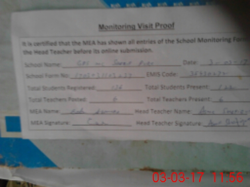 | Attendance Register | Head Teacher | MEA with School | Visit Proof |