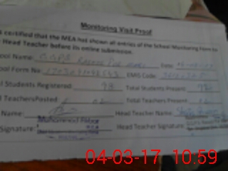 | Attendance Register | Head Teacher | MEA with School | Visit Proof |