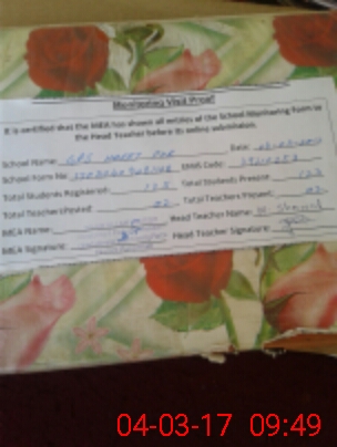 | Attendance Register | Head Teacher | MEA with School | Visit Proof |