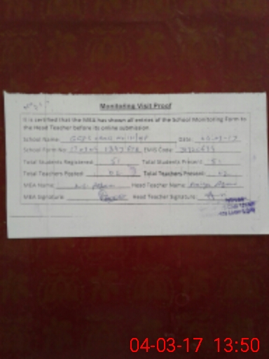 | Attendance Register | Head Teacher | MEA with School | Visit Proof |