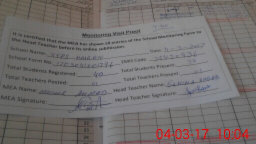 | Attendance Register | Head Teacher | MEA with School | Visit Proof |