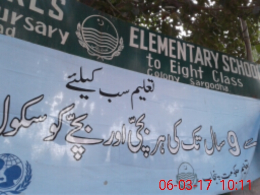 | District: SARGODHA | Tehsil: SARGODHA | Markaz: SARGODHA SADAR - FEMALE | Level: Middle | |