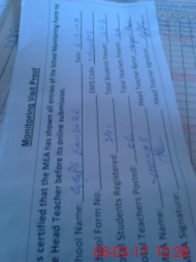 | Attendance Register | Head Teacher | MEA with School | Visit Proof |