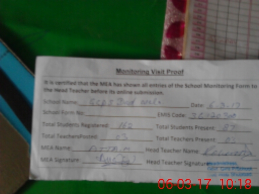 | Certified that this School was Inspected by the Undersigned MEA/DMO Today and the Information Stated Above is as Per Record. | |||||