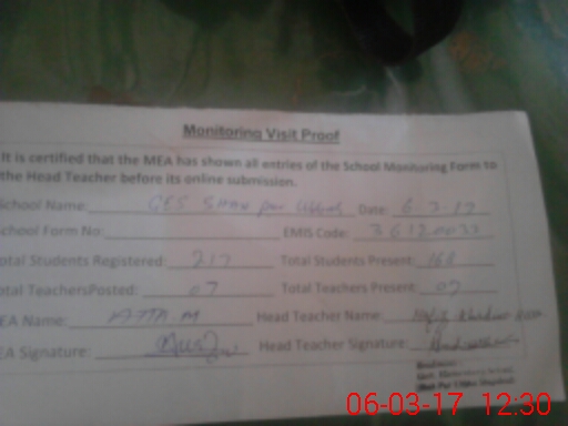 | Attendance Register | Head Teacher | MEA with School | Visit Proof |