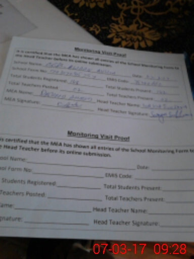 | Attendance Register | Head Teacher | MEA with School | Visit Proof |