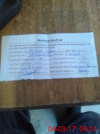 | Attendance Register | Head Teacher | MEA with School | Visit Proof |