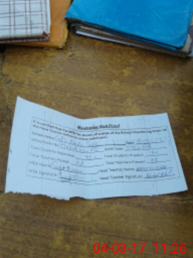 | Attendance Register | Head Teacher | MEA with School | Visit Proof |
